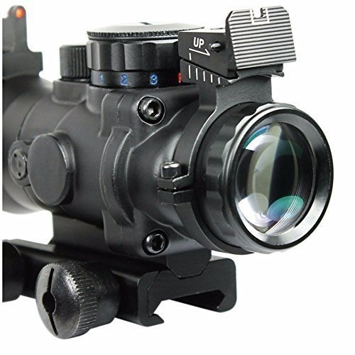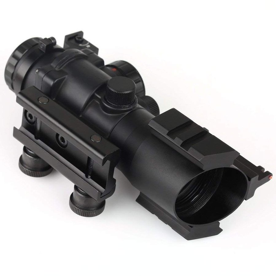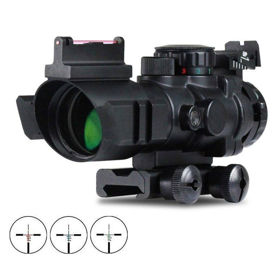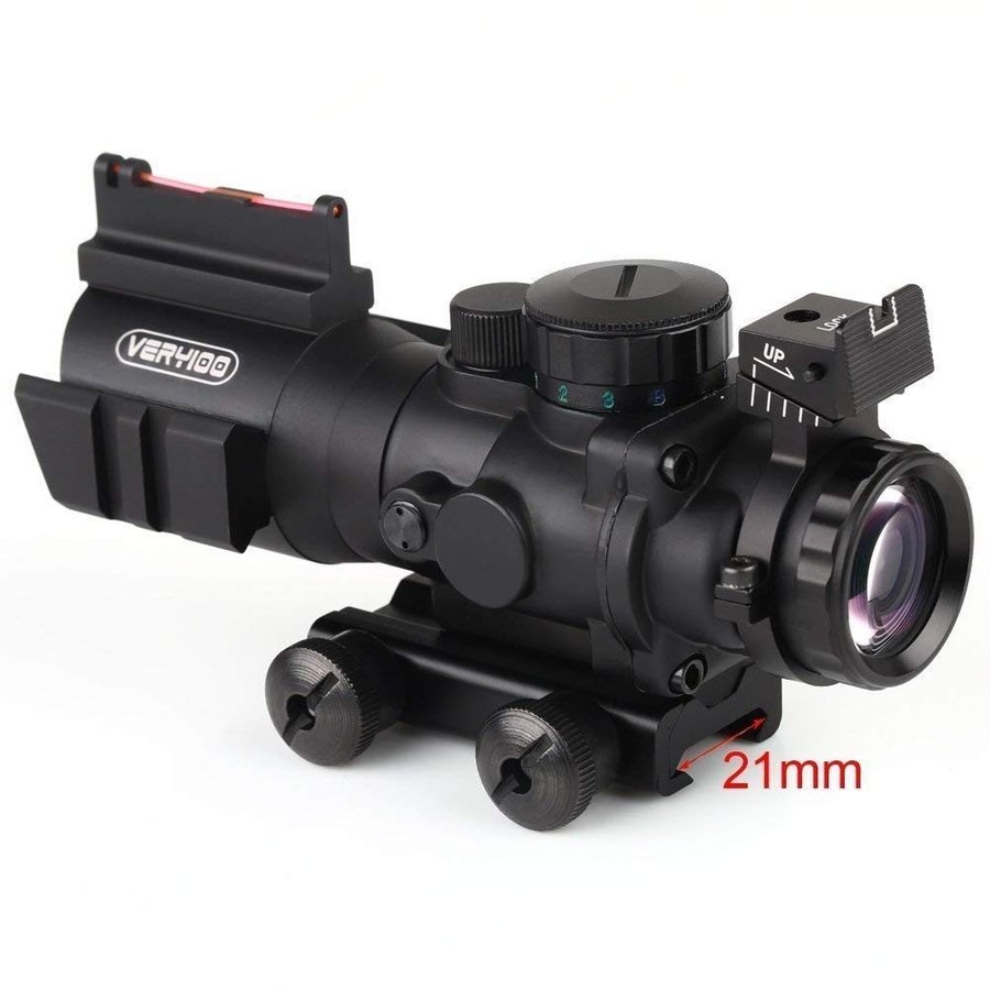 Very100 ドットサイト ライフルスコープ レッド・グリーン・ブルーイルミネート 20mmレール 4x32 4倍ズーム サイドレイル付き 照準器 防霧 防水 耐衝撃 光ファイバー視力を備えた