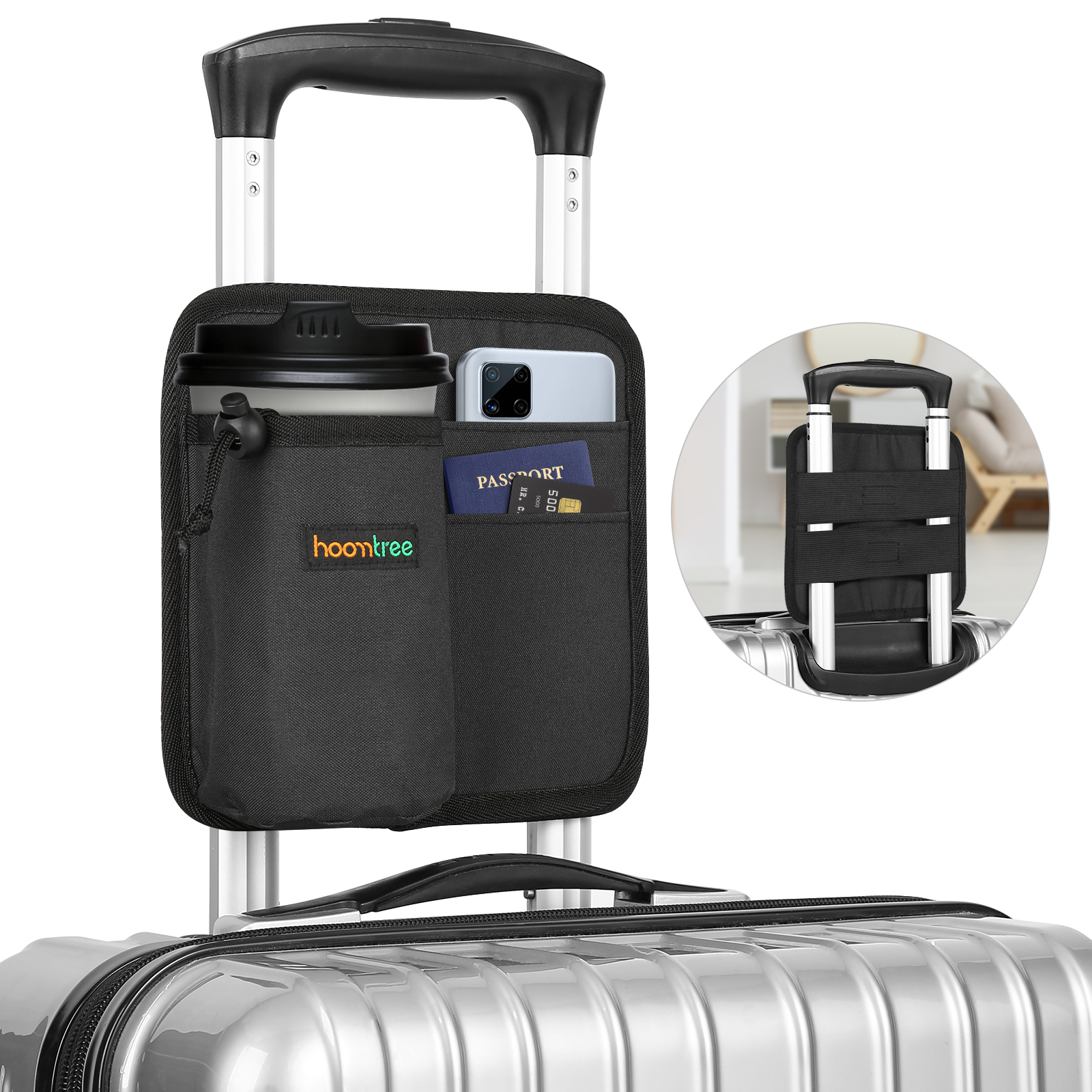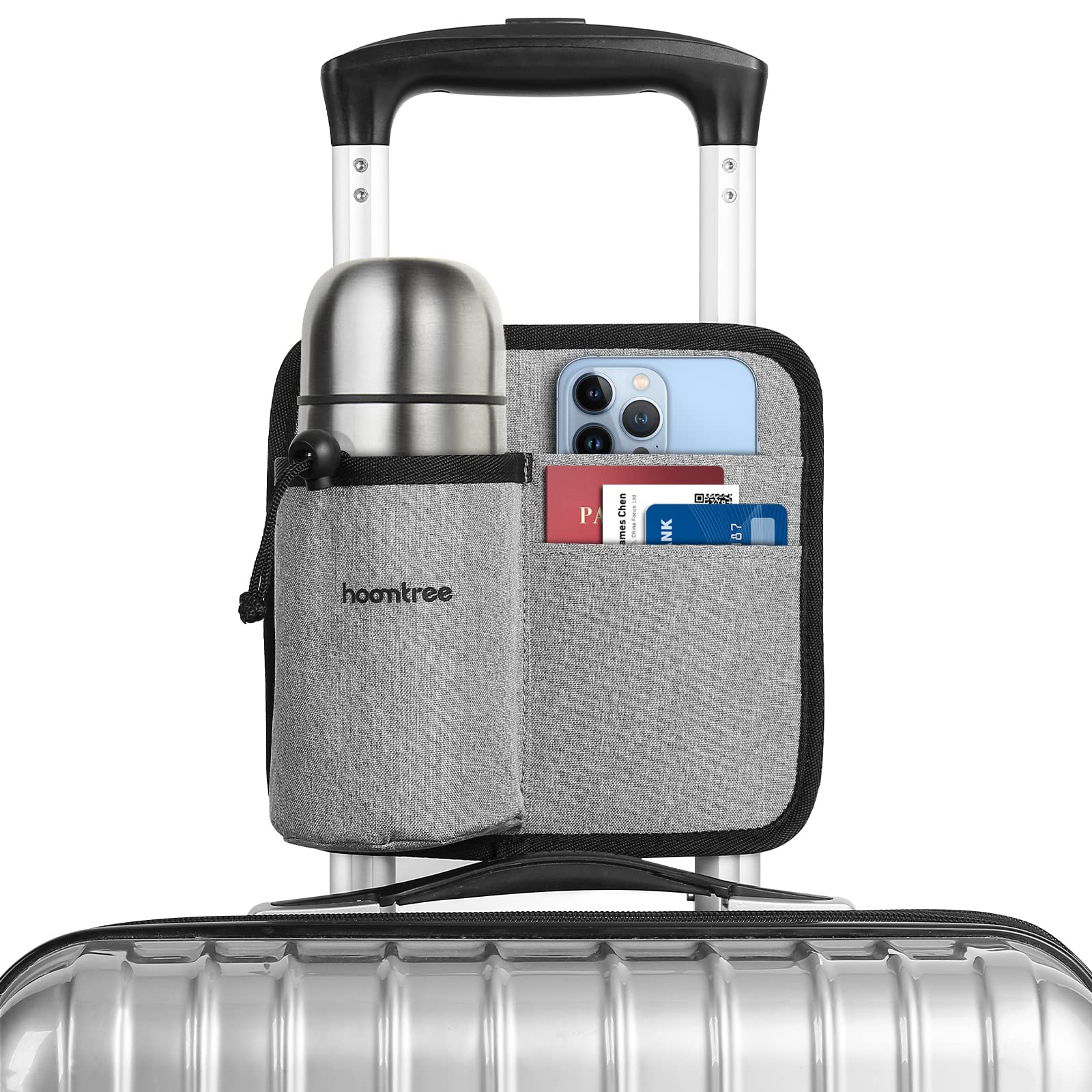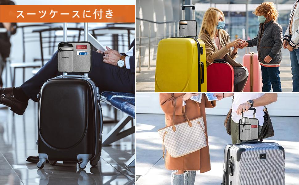 hometreeスーツケース用 ボトルホルダー サイズ調節可 旅行 出張用 小物入れ ホルダー ポケット付き スーツケース用 ボトルホルダー 水筒入れ ドリンクホルダー 飲み物ホルダー キャリーケース 旅行ケース カップホルダー 簡単装着