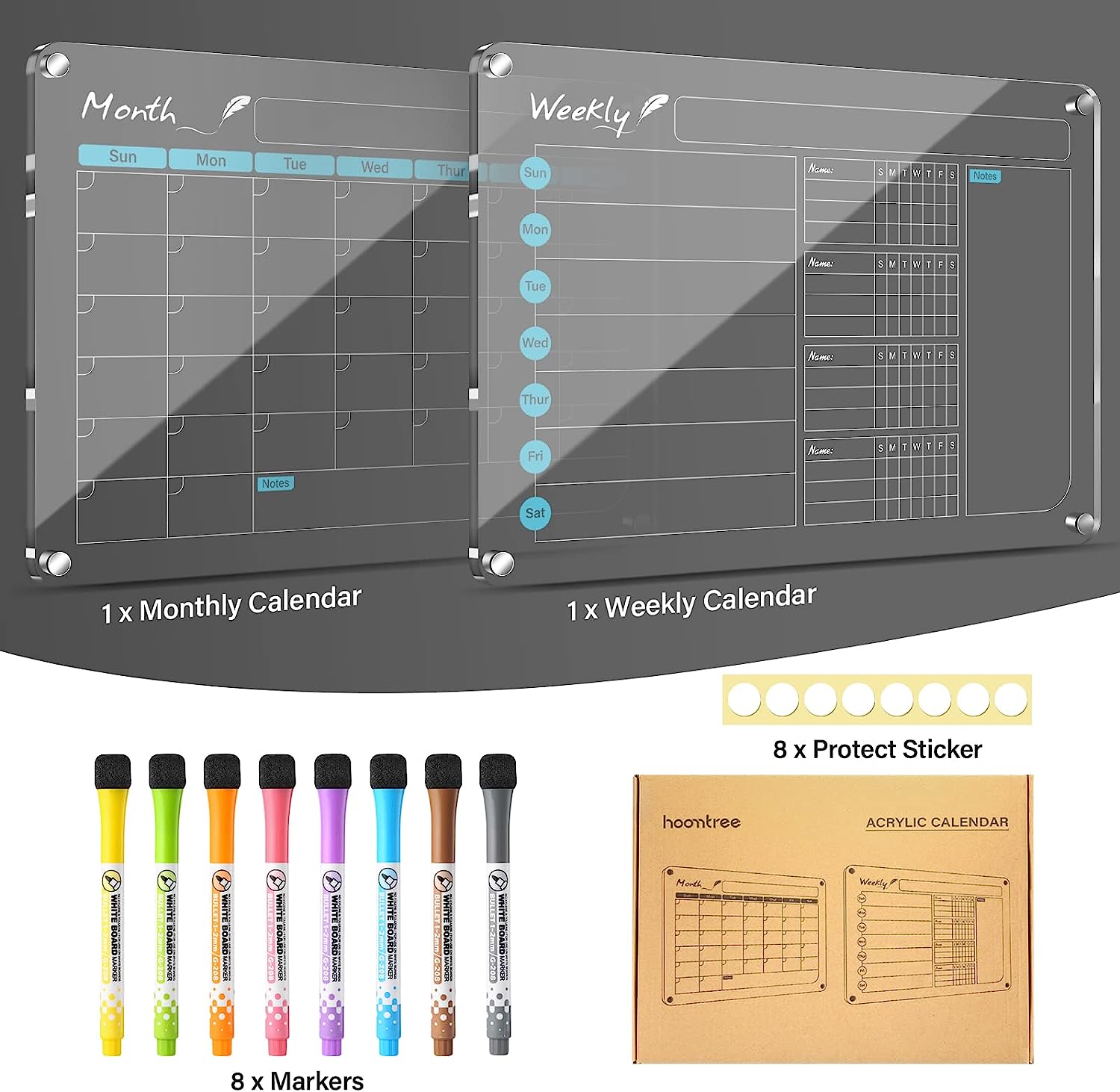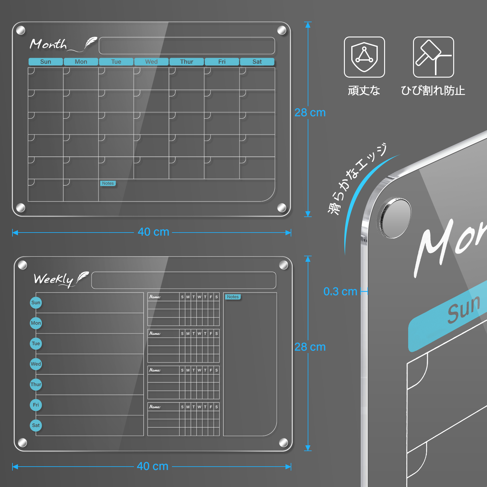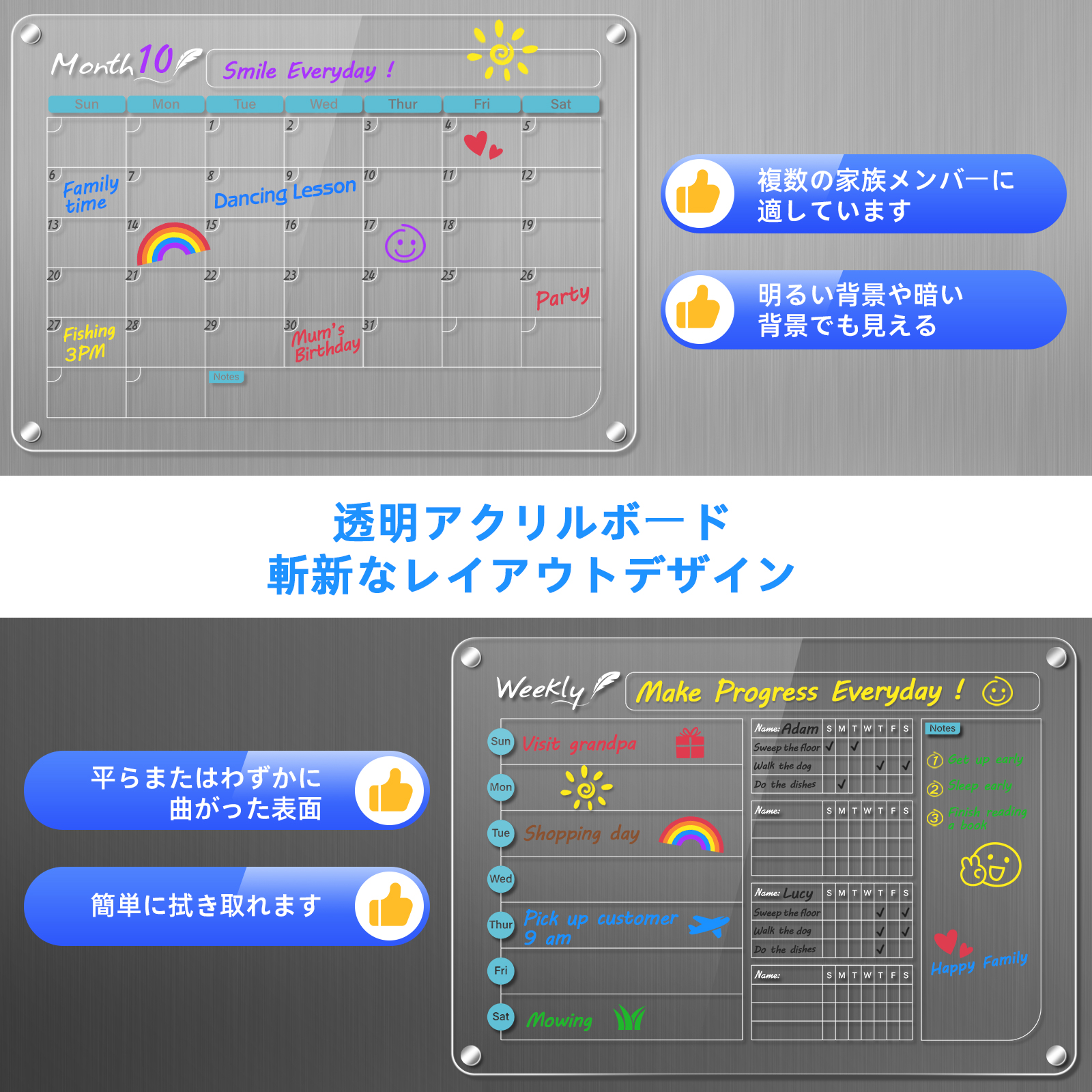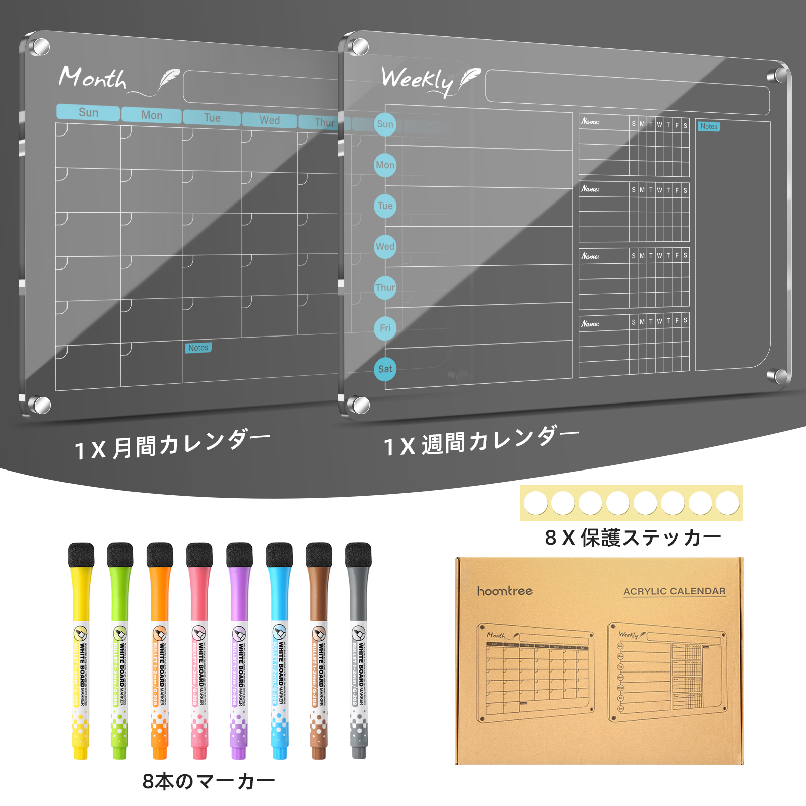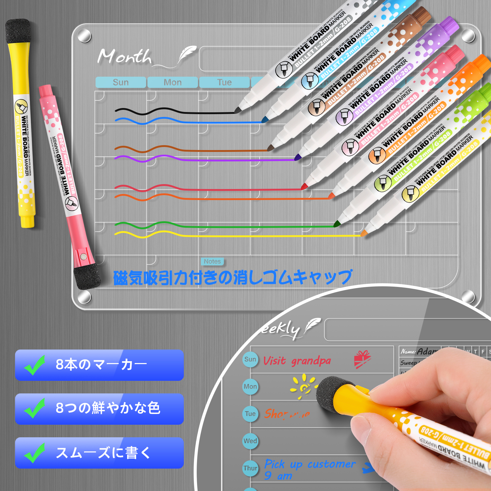 8つの鮮やかな色のマーカーが付属しており、スケジュールを見やすく明確にし、重要なことを異なる色で書き留めることができます。家族の活動を追跡し、子供たちに計画的な習慣を身につけさせるのに最適です。