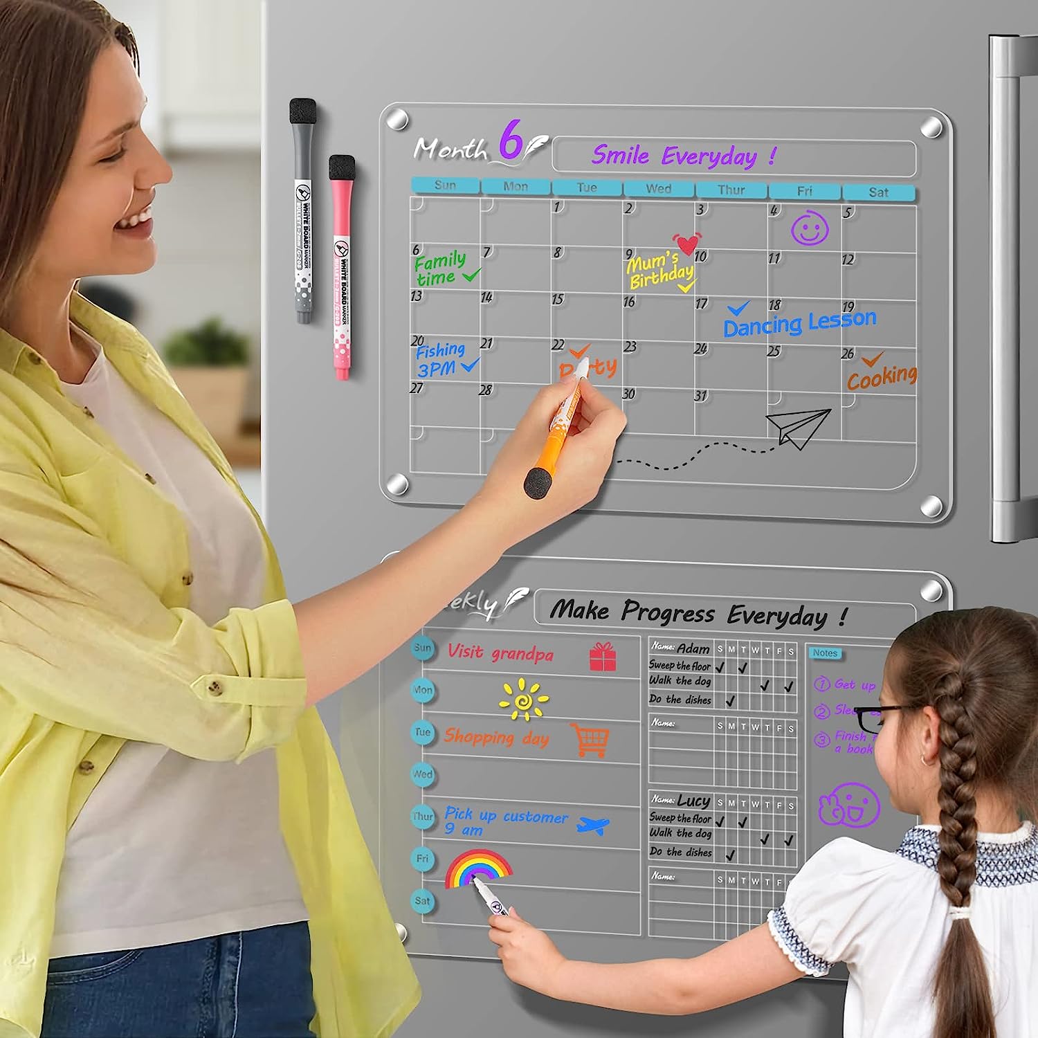 hometreeマグネット式カレンダー透明ボード シート マグネットシート 冷蔵庫用 スケジュール 冷蔵庫磁石シート 磁気 カレンダー 2枚セット 磁石対応 強力マグネット 繰り返し利用可能 予定表28cm*40cm