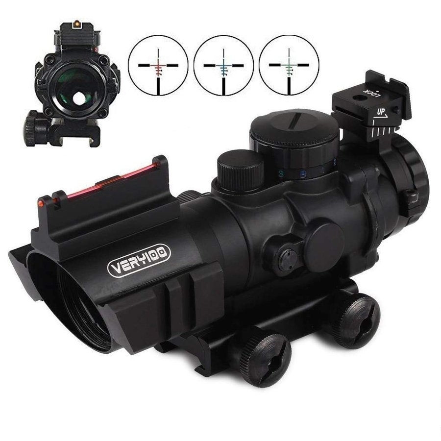 Very100 ドットサイト ライフルスコープ レッド・グリーン・ブルーイルミネート 20mmレール 4x32 4倍ズーム サイドレイル付き 照準器 防霧 防水 耐衝撃 光ファイバー視力を備えた