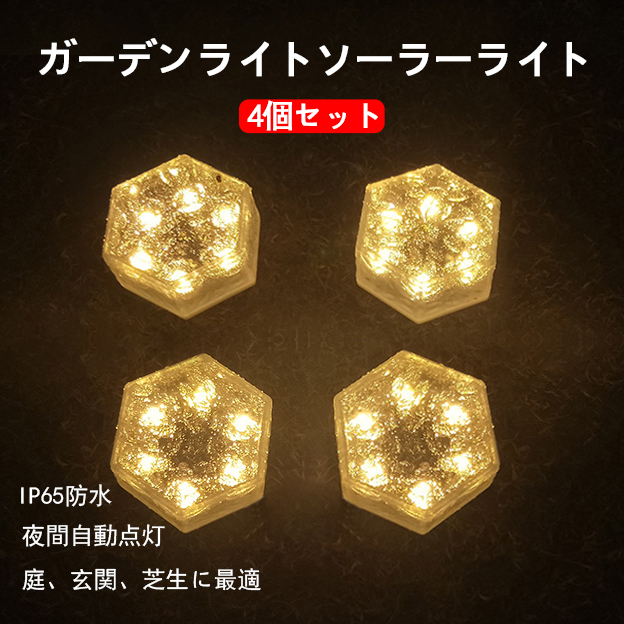 ソーラーライト ガーデンライト LED ソーラーガーデンライト 屋外 防水 埋め込み式/置く型庭園 玄関灯 芝生 車道 歩道 ウッドデッキ 六角形 4つセット 高輝度 600mAh 明るい 長時間 自動点灯/消灯 電気代不要 ガーデニングライト 庭飾り